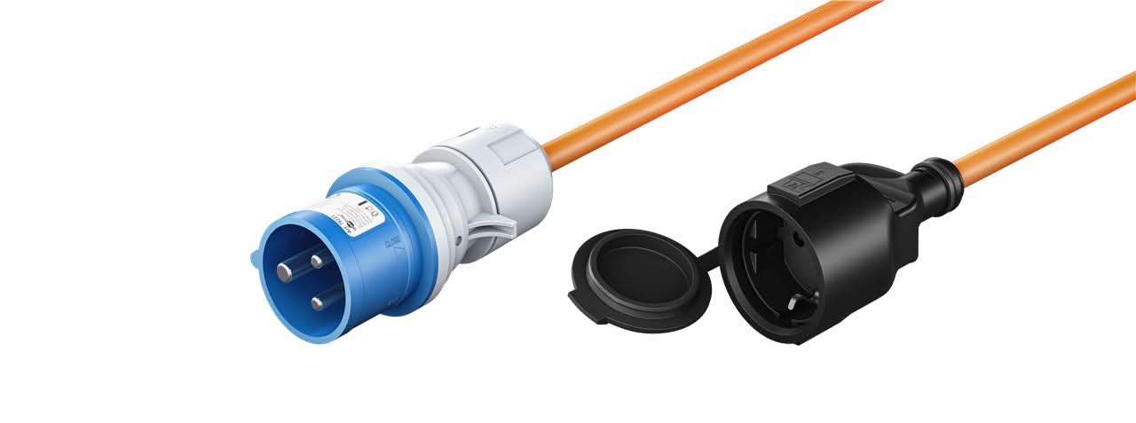 1.5 meter CEE camping stroomkabel naar Schuko - IP44 waterdicht - 3 x 2.5 mm² koperen kern