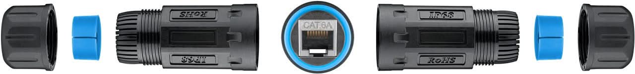 Cat 6a koppelstuk voor buiten - IP68 - 2 x RJ45 female - Afgeschermd